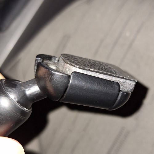 一通りYouTubeとかで直し方を調べると、手順は大体同じようなものやった。まず、下準備としてバックミラー側の接着面となっている金属部分を本体から外して、付着している古い接着剤を取り除く必要があるとのこと。が、しかーし!どうやっても外れなかった。YouTubeでみんながやっている通りにやってみたし、なんなら、石鹸水をつけてもみたけど、うんともすんとも言わず。しょうがないので、取り外すのは諦めた。